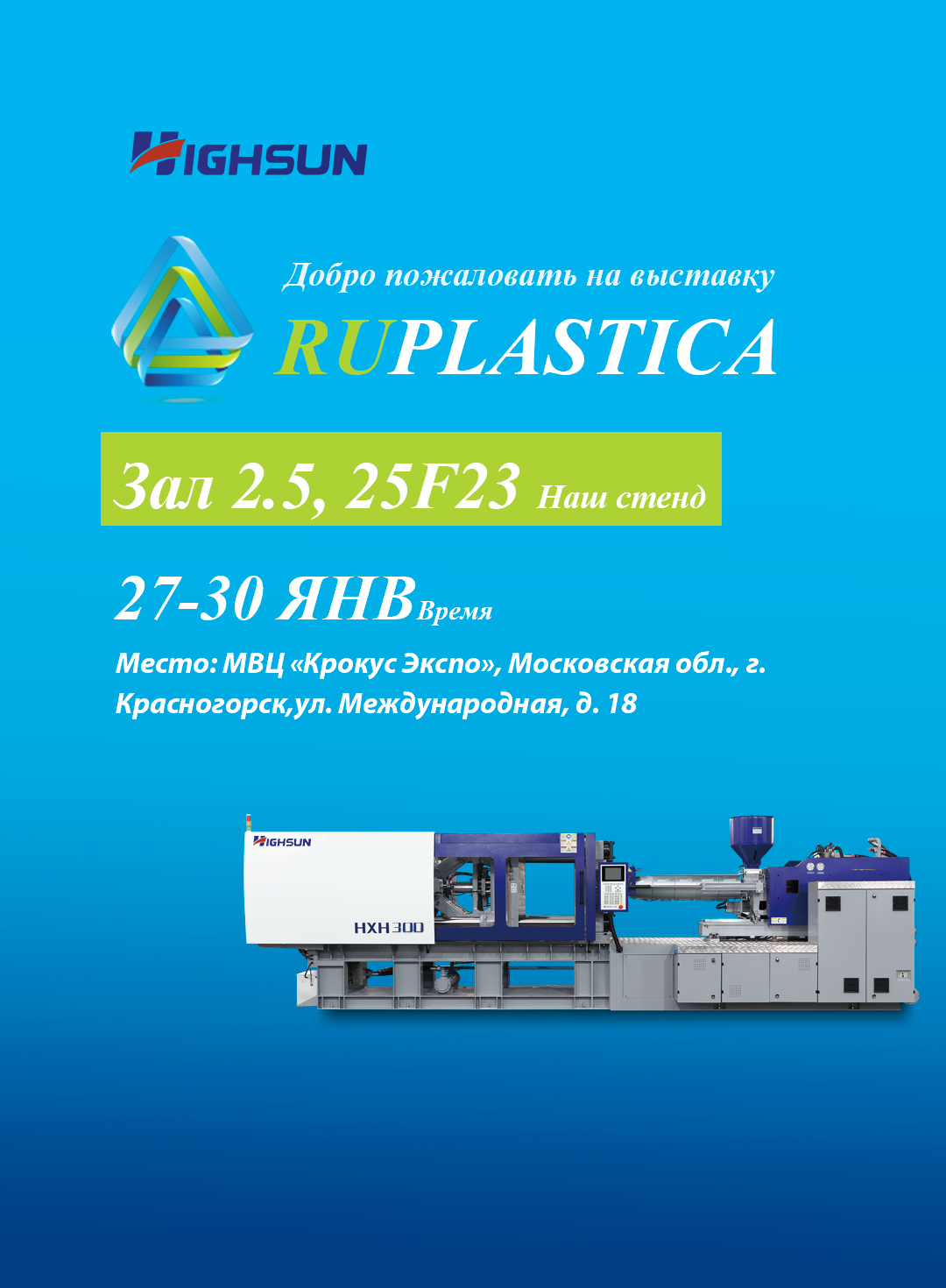 | Ausstellungsinformationen Bitte kontaktieren Sie uns für die Bestellung von RUPLASTICA Hash-Stand: 2.5, 25F23, Laufzeit: 27.-30. Januar Standort: МВЦ „Крокус Экспо“, Moskauer Gebiet, г. Krasnogorsk, ул. Международная, д. 18 |